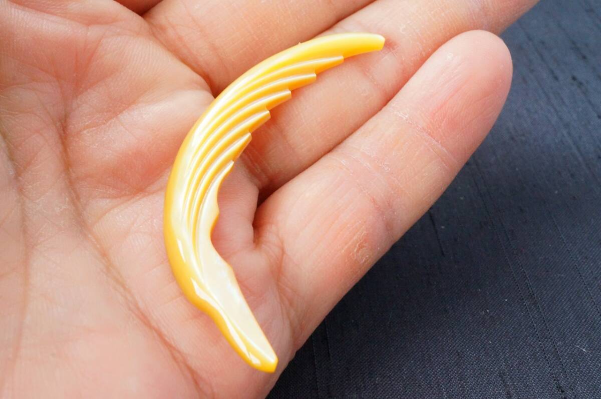 - 【即決特別価格!極上品】希少!35年前の未使用在庫!上質黄蝶貝「羽根」彫刻ルース甲府研磨加工