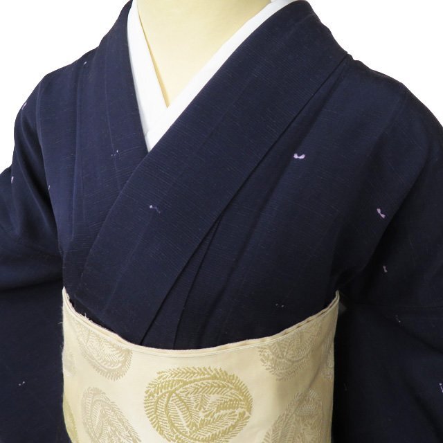 > 特選 紬地 着物 中古 正絹 袷 カジュアル 濃紺色 身丈170.5cm 裄68cm L トール きもの北條 A1027-1