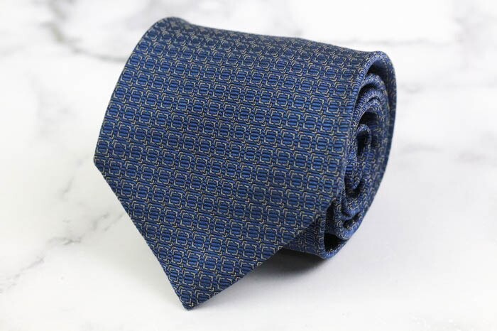 - ダナキャラン シルク 格子柄 スクエア柄 アメリカ製 ブランド ネクタイ メンズ ネイビー DKNY