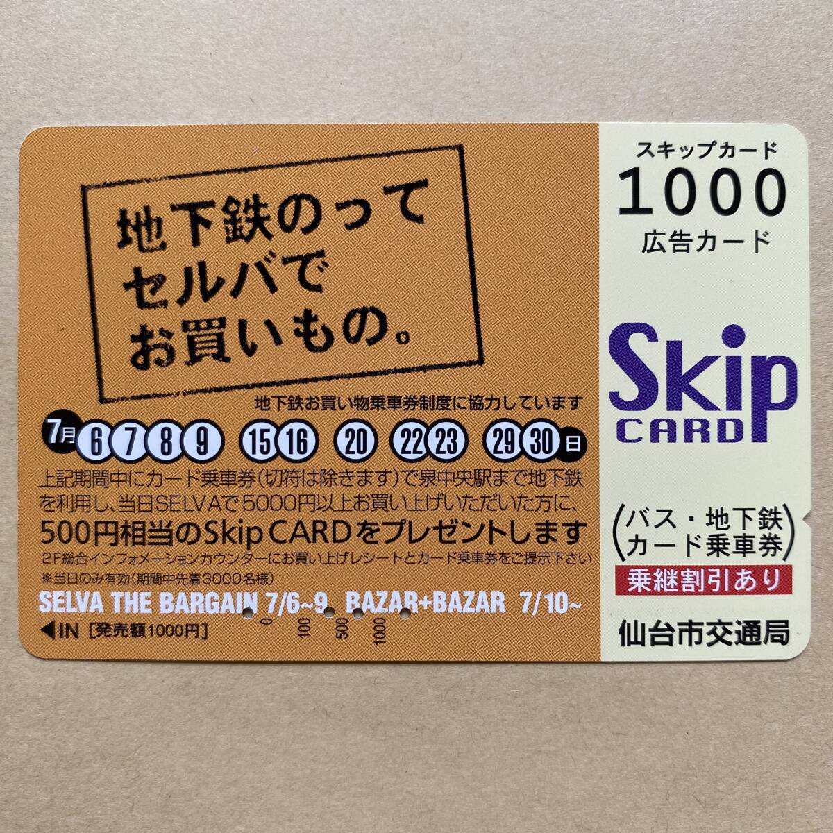 - 【使用済】 スキップカード 仙台市交通局 地下鉄のって セルバで お買いもの。