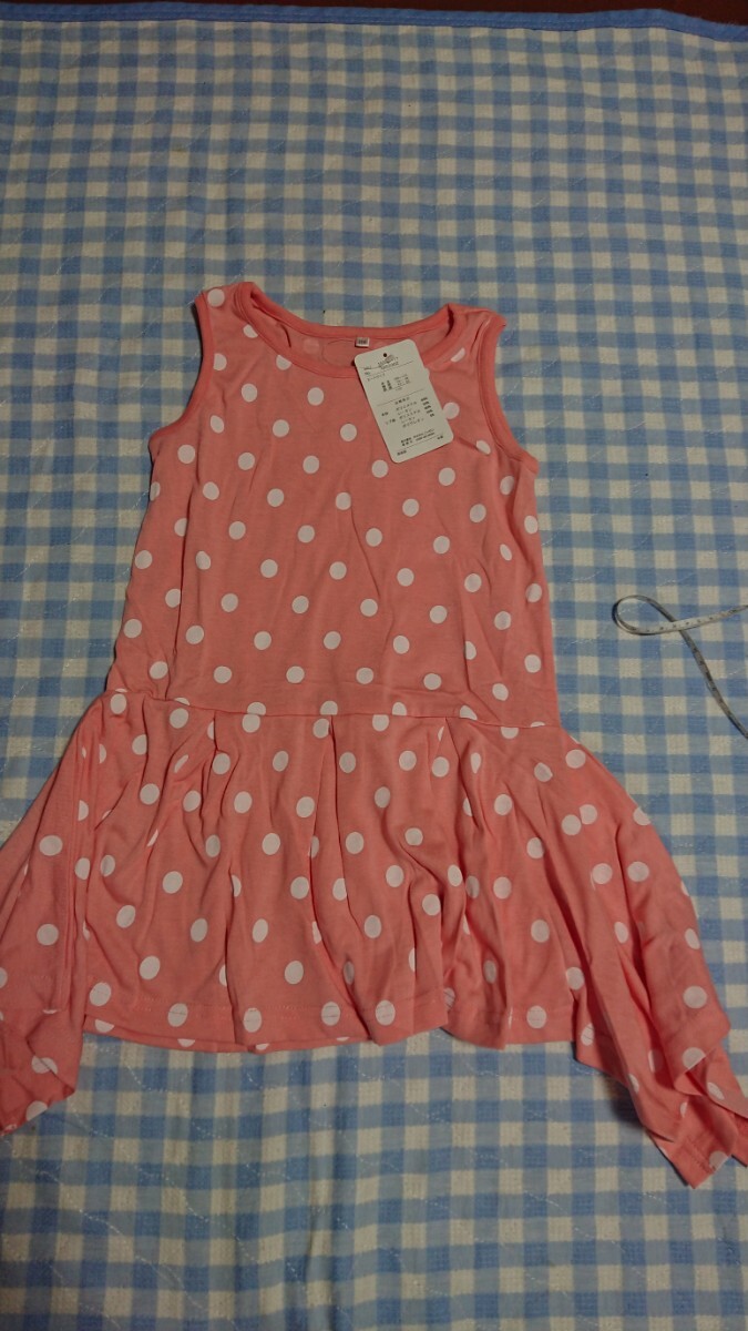 - ○177☆未使用・保管品☆裾変形ひらひらノースリカットソーワンピ Pドット 110
