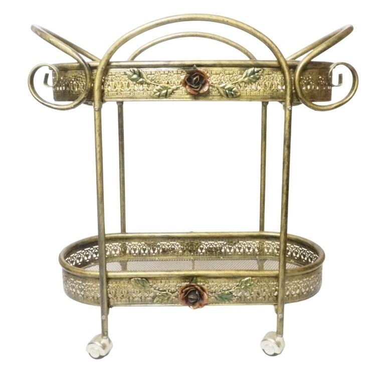 - 西洋ビンテージ イタリア 鉄製 薔薇モチーフキャスターワゴン キッチンワゴン 1980〜1990年代 ※特別配送及び引取限定 SMG606