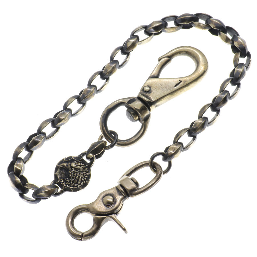 - 真鍮 ブラス ウォレットチェーン 高級 オリジナル 燻し加工 シルクリンク ティアーリンク (イーグル)