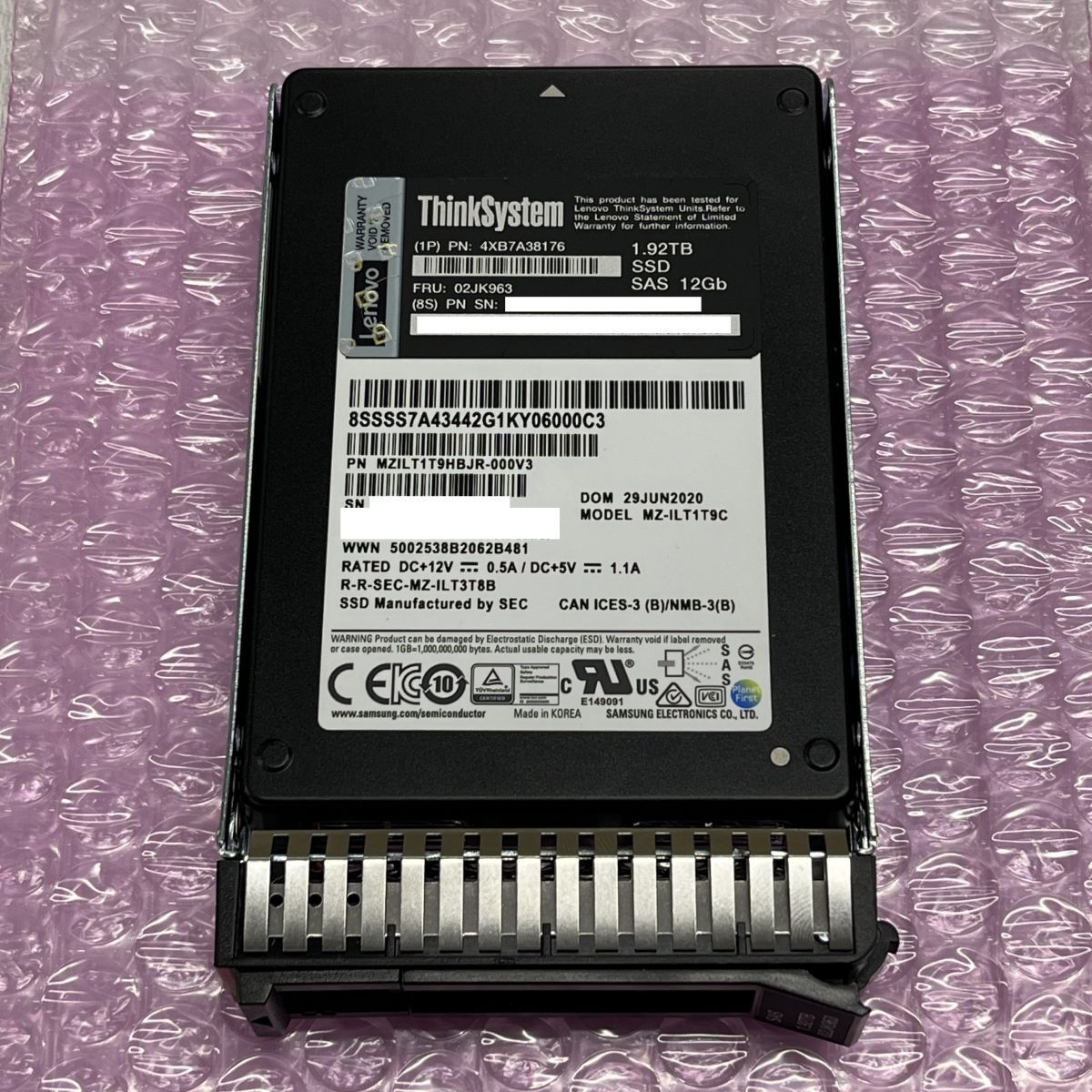- @T0916 Lenovo エンタープライズSSD SAS SSD 12Gbps 1.92TB Part No. D7A57743 FRU Part No.02JK963