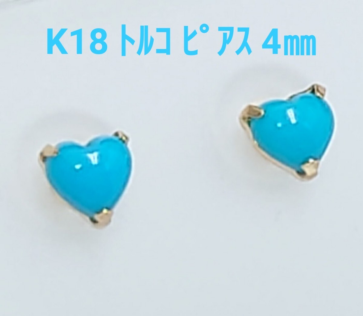 - トルコ石 4㎜ K18 ピアス(PE4134)
