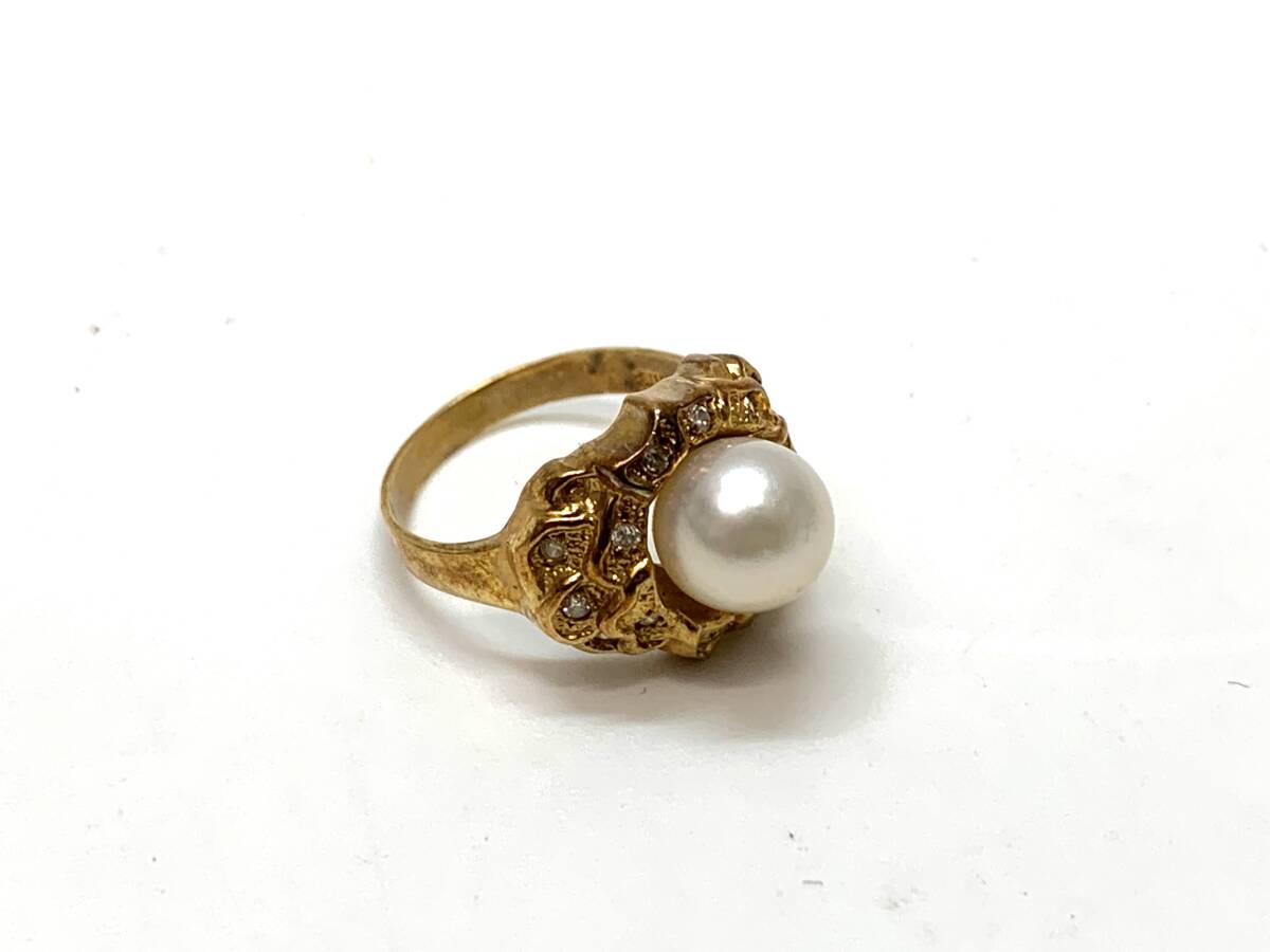 > 【送料無料】 大粒 K18 18金 パールリング 真珠 指輪 総計D0.14 #12 12号 総計5.7g 店頭受取可