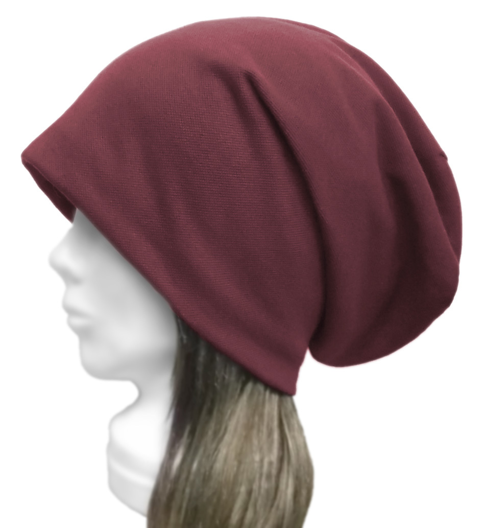 - ◇送料無料◇ ハンドメイド◆ロングルーズワッチキャップ◆鹿の子織コットンニット/杢赤系 ◇ゆったりサイズ・小顔効果・オールシーズン