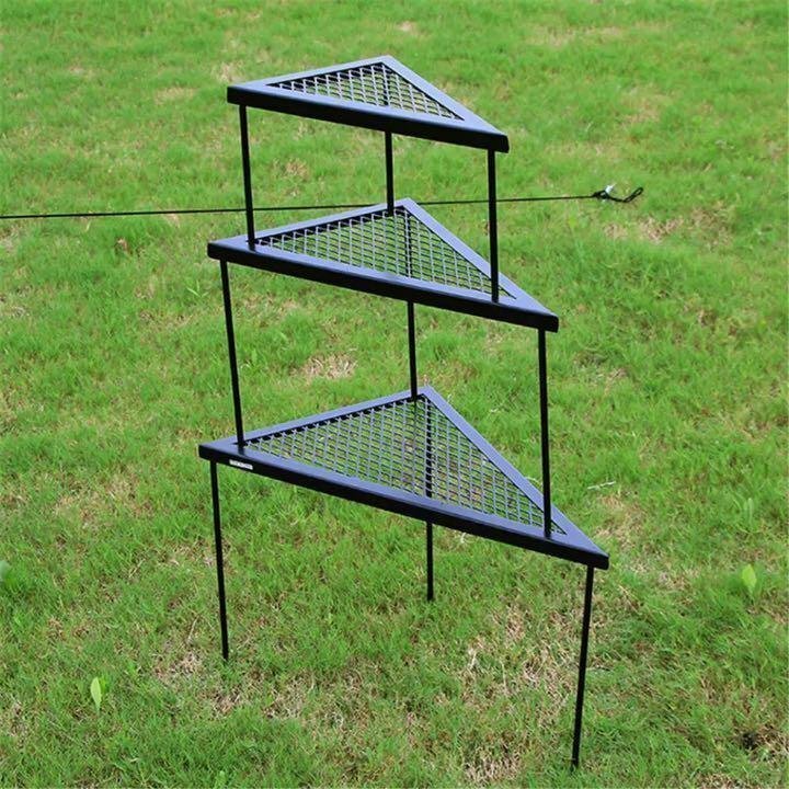 - アイアン 焚火ラック 焚き火ゴトク 三角形テーブル 五徳 キャンプ アウトドア 3点セット BBQ 収納ケース付 コンパクト