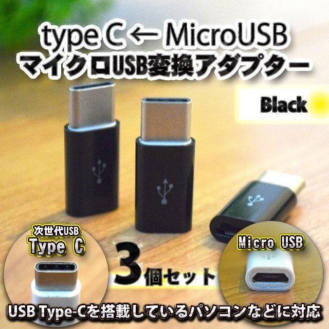 - 【Type-c】マイクロUSBケーブル → USB Type C 変換アダプター x3 変換アダプター ブラック