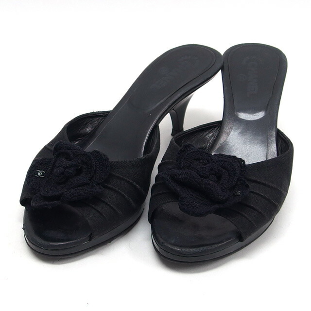 - シャネル カメリア ココマーク サンダル ピンヒール 黒 約23.5cm[20240611]