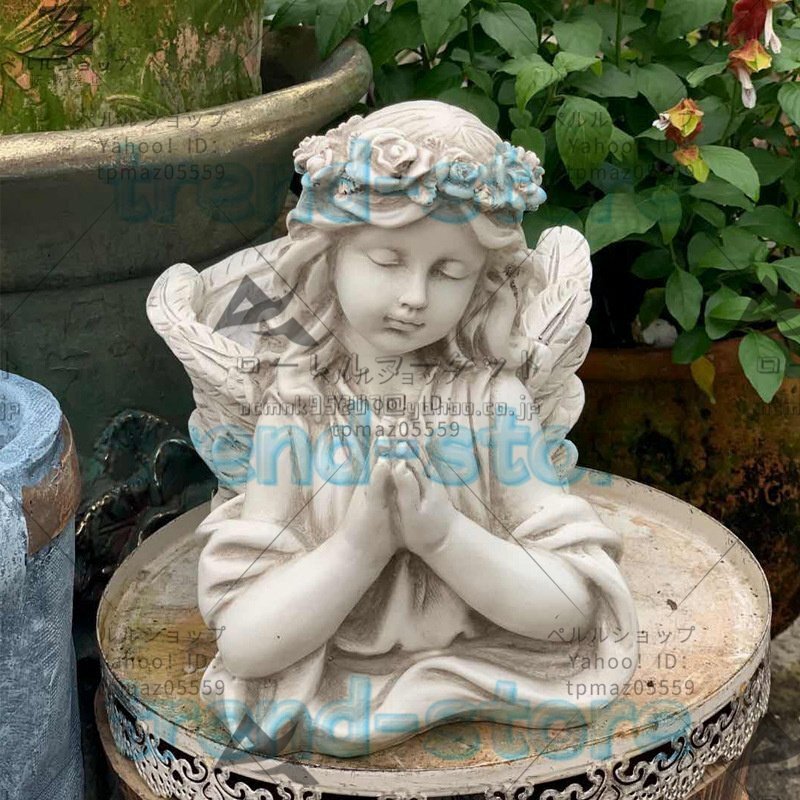- 西洋インテリア 天使 祈り 祈るエンジェル プランター 花器 ガーデンオーナメント 雑貨 オブジェ 置物 フィギュリン 樹脂