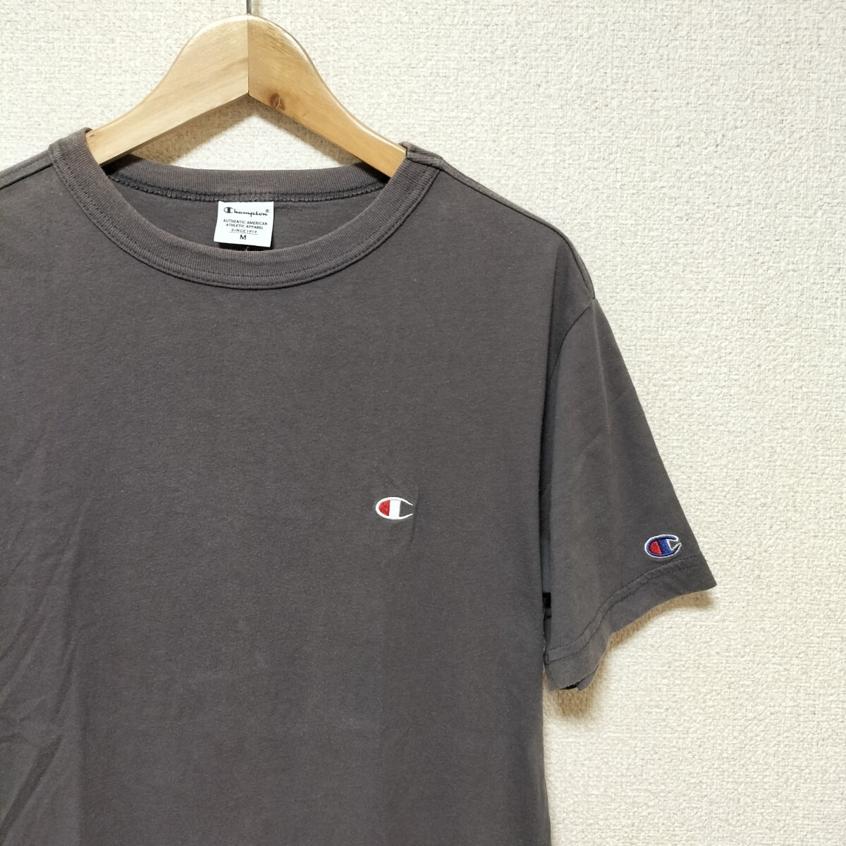 > ☆Champion チャンピオン 半袖 Tシャツ 刺繍ロゴ 目あり チャコールグレー メンズ サイズM 無地 トップス カットソー ブランド古着 USED