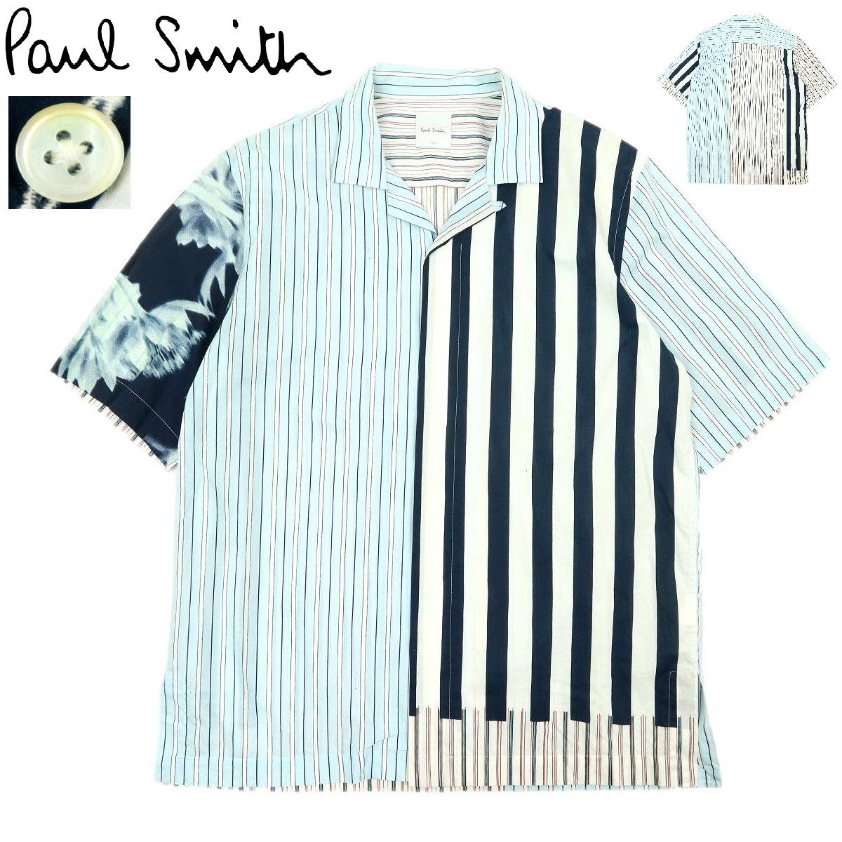 - 【B3067】【美品】【定価30,800円】Paul Smith ポールスミス 半袖シャツ コラージュパネルプリントオープンカラー 103322 サイズL