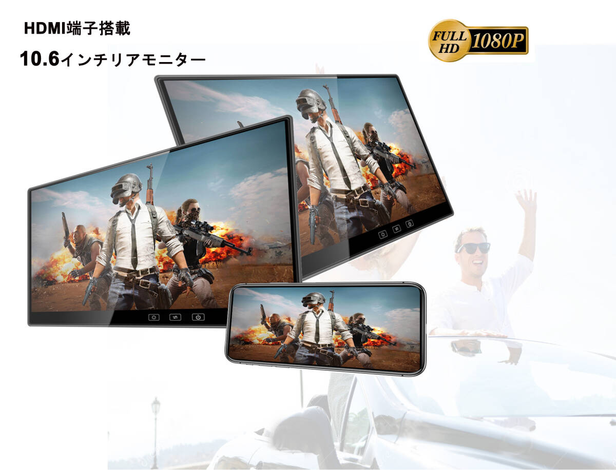 > INTENAVI 10.6インチ 1080P リアモニター 車載モニター 軽量 HDMI 薄型 2台
