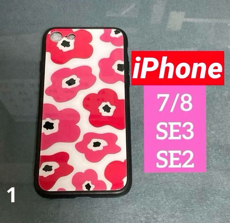 - iPhone7 8 SE3 SE2 強化ガラスケース iphoneケース 花柄1