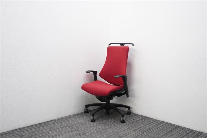 - 【送料無料】イトーキ エフチェア 可動肘 ハイバック クロスバック ハンガー付 ブラックシェル ラズベリーレッド