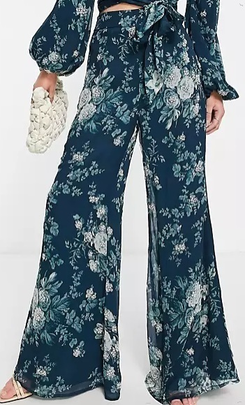 - soft wide leg trouser navy floral UK16 換算ウエスト 83cm