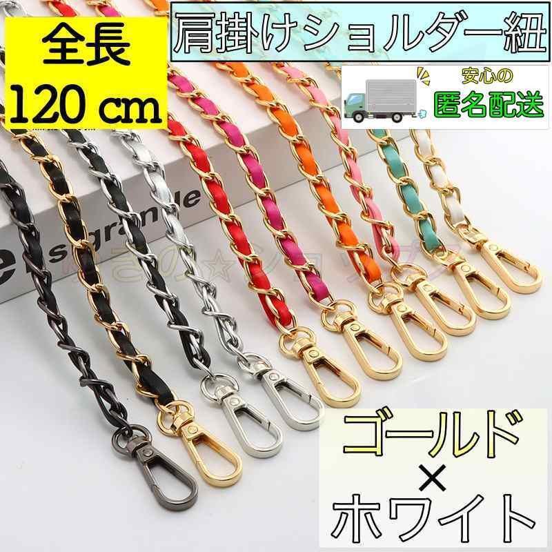 - 帯 肩紐 ショルダーストラップ ホワイト×ゴールド カバン バック ベルト