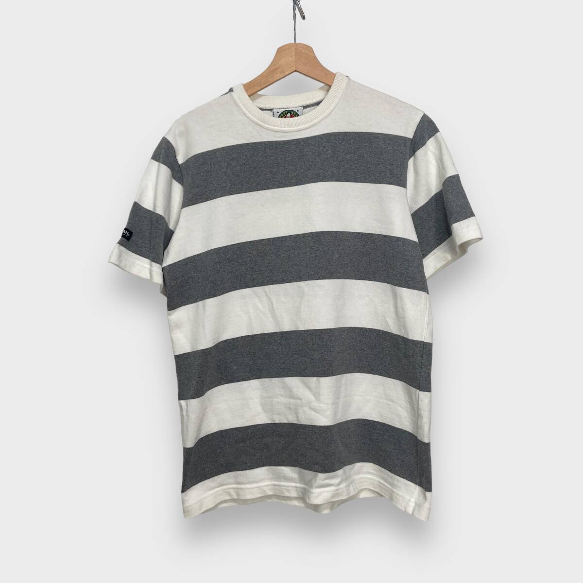 > 送料無料☆BARBARIAN☆バーバリアン☆ボーダー柄Tシャツ☆太ボーダー☆ヘビーウェイト☆ホワイト☆グレー☆M☆F24M