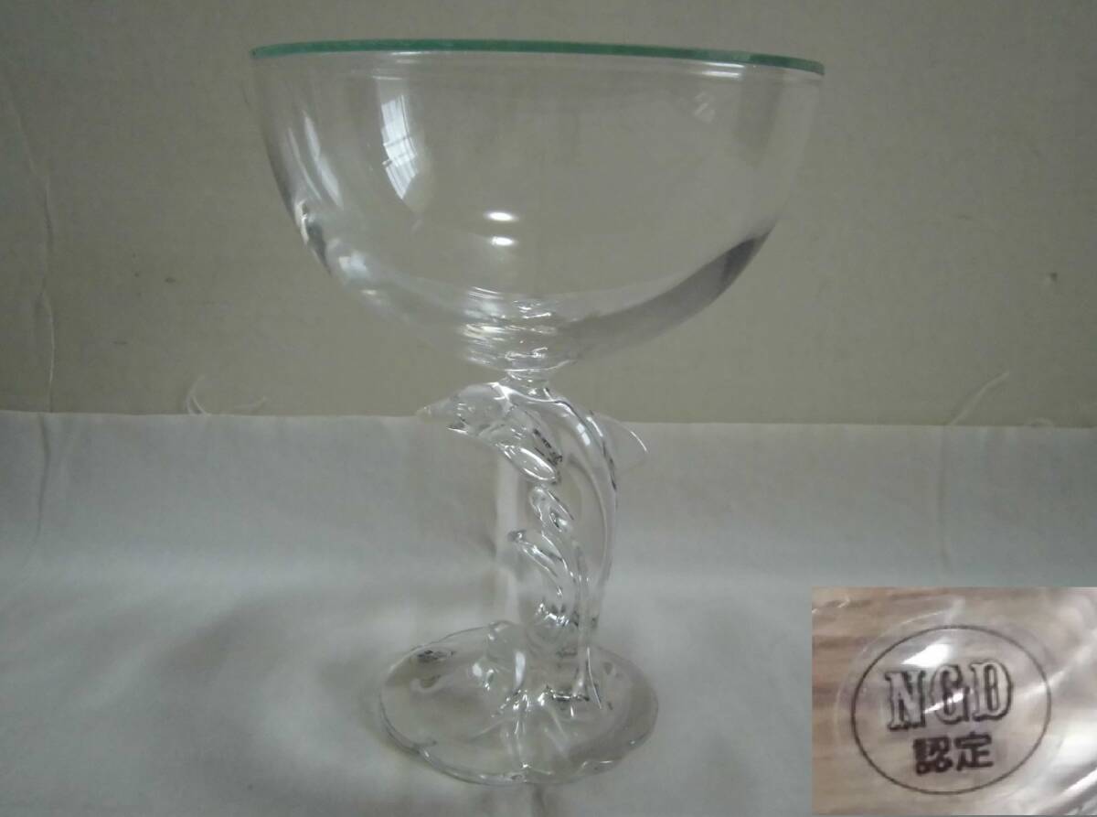 - ディスプレイケース シャンパングラス型 イルカ柄 ガラス製 NGD認定 コレクション ジュエリー 宝石 インテリア 小物入れ 展示 硝子 工芸品