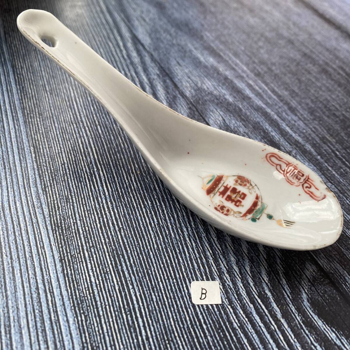 > B ◆台湾レトロ◆レンゲ 蓮華 ランタン 提灯 ダブルハピネス 喜喜 福◆台湾食器◆ヴィンテージyha1e34501502