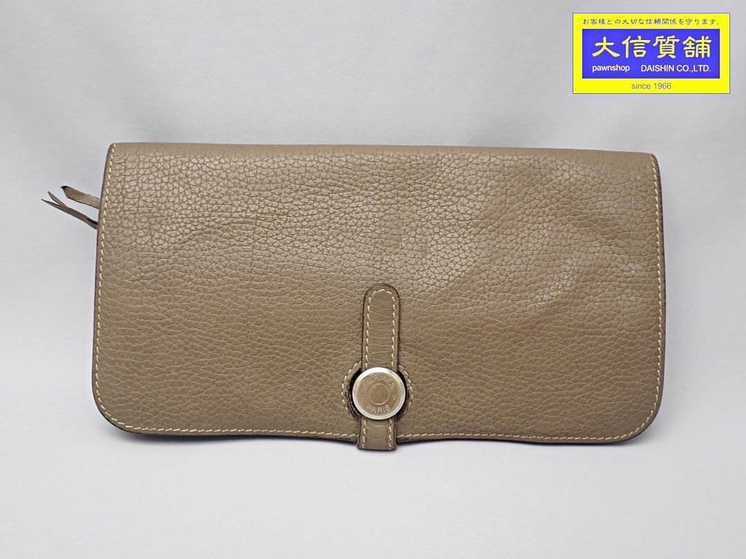 > HERMES エルメス ドゴンロング 長財布 O刻印 エトゥープ シルバー金具 トリヨンクレマンス 中古B 【送料無料】 A-8115