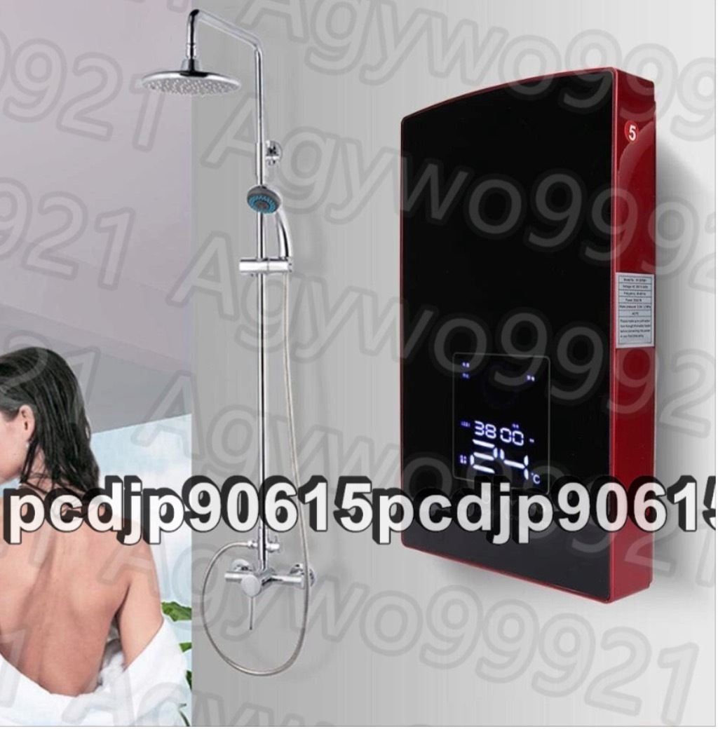 > 電気タンクレス給湯器、8500W壁掛け音声制御ホームインスタント温水ヒータータッチコントロールLEDディスプレイ給湯器シャワーシャワーキッ