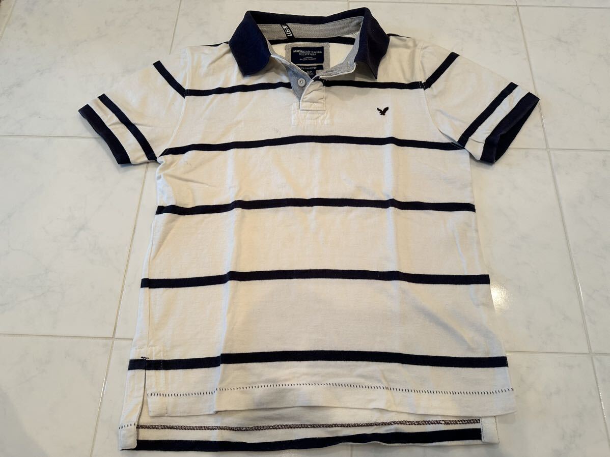 - 【即決】US古着アメリカンイーグル★半袖ポロシャツ サイズS★白ホワイト紺ネイビーボーダーAmerican EagleOutFitters
