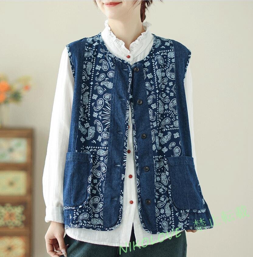 - 新品 夏プリント柄 ベスト おしゃれ トップス ゆったり ノースリーブ 羽織り オフィス カジュアル 重ね着 通勤 OL チョッキ LH129