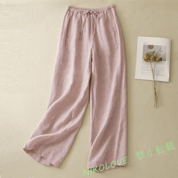 - 新品 カジュアル 涼しい 無地 ロング丈 パンツ きれいめ オシャレ ゆったり リネン ワイドパンツ 綿麻 人気 ボトムスピンクXL LG963