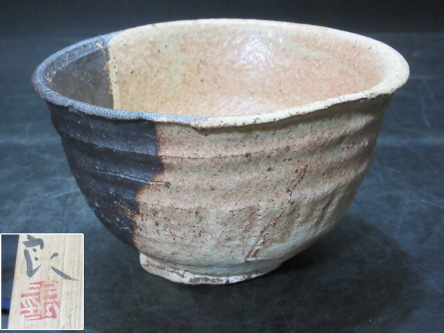 - 奇才 「鯉江良二」 造 設楽手茶碗 共箱 秀逸作