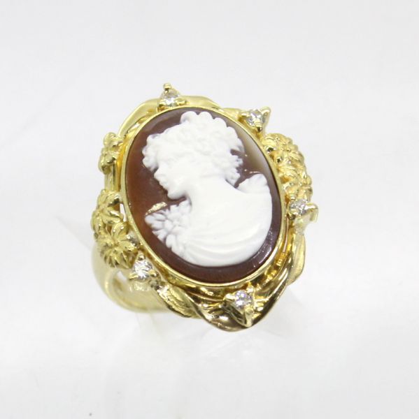 - ◎中古美品◎18金 ダイヤ 0.12ct シェルカメオ リング 14号