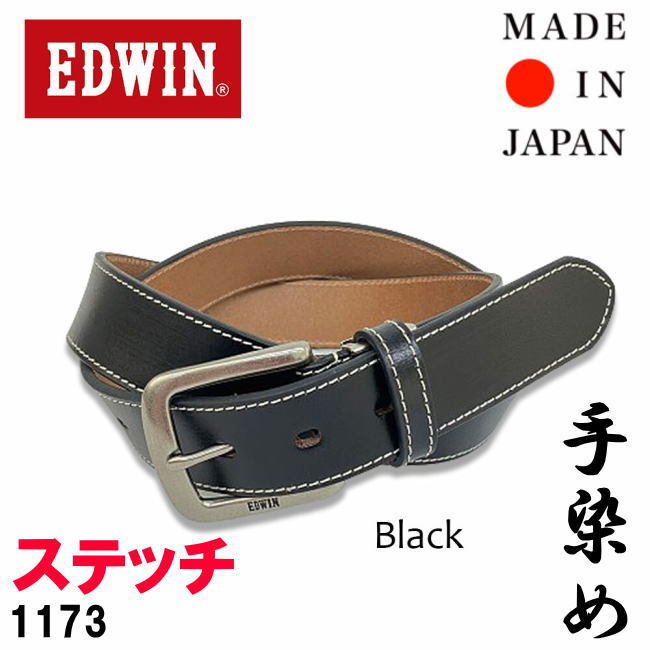 - ブラック EDWIN エドウイン 1173 日本製 手染め シングルステッチ ベルト ビジネス