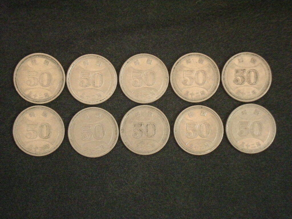 - 《大型穴無し50円》昭和32年 ニッケル貨◆10枚■並品