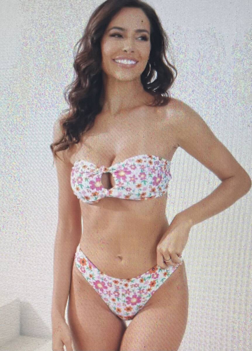- 女性のツーピースフローラルプリントバンドゥビキニ水着、ハイカットボトム、夏のビーチウェア、速乾水着