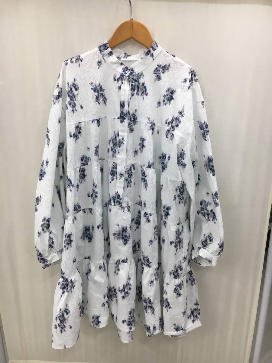 - リランドチュール Rirandture ワンピース 花柄 ティアードワンピース 8分袖 サイズ2 白×紺花柄