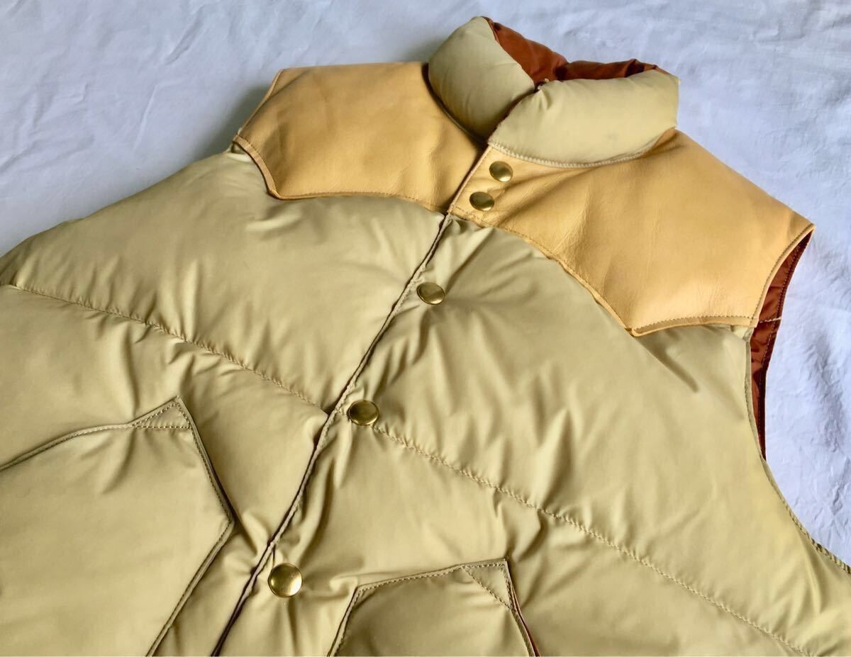 - 【美品】Rocky Mountain Featherbed ダウンベスト サイズ38 M ベージュ ロッキーマウンテン ヨークレザー 牛革 正規品 日本製 アメカジ