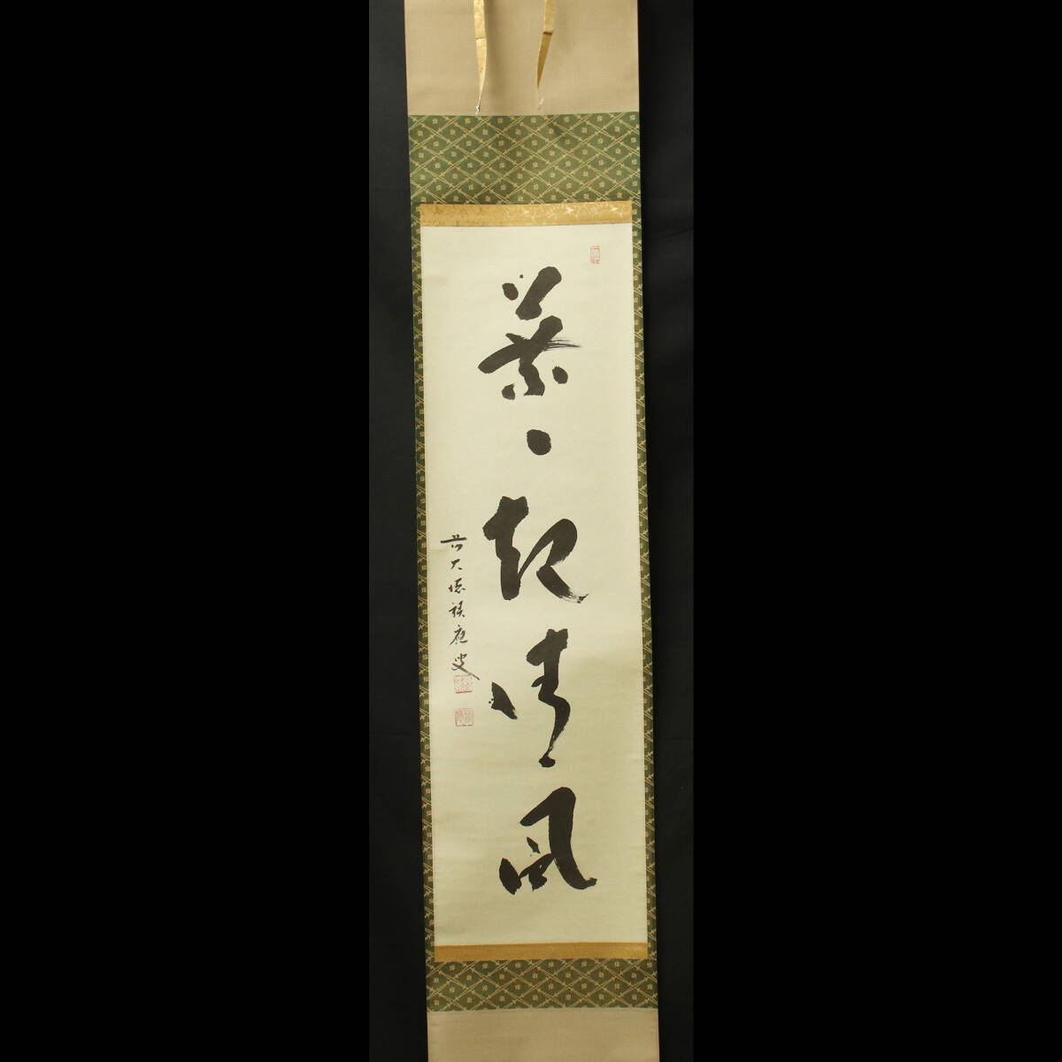 - 【真作】『福本積應(臨済宗大徳寺派宝林寺住職)』作/紙本 書 揮毫 一行 茶掛け “葉々起清風” <240625003>