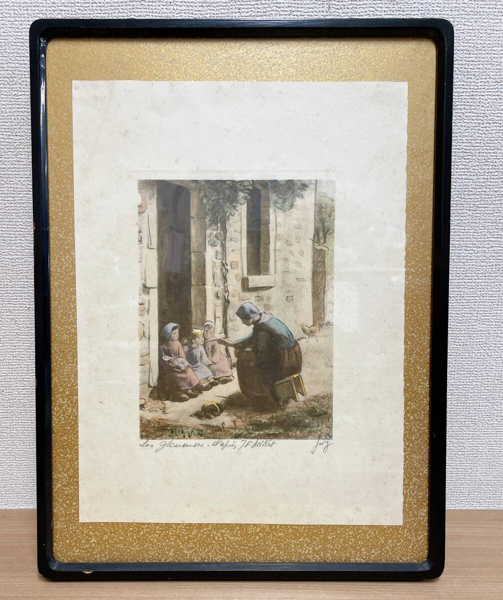 > ◆模写【ジャン=フランソワ・ミレー『子どもたちに食事を与える女(ついばみ)』】絵画/アート/人物画/インテリア/コレクション/A66-006