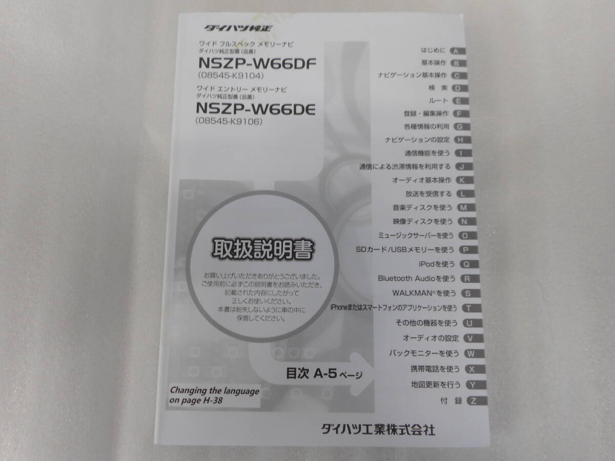> ダイハツ純正◆メモリーナビ◆ナビ◆NSZP-W66DF◆08545-K9104◆取説◆説明書◆取扱説明書