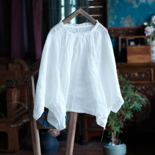 - lgn 2407 2075 チュニック 薄手 洋服ミックス ロマンファッション 苧麻100% リネン 日焼け紫外線防止 ホワイト
