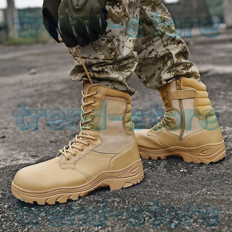 - ミリタリーブーツ メンズ タクティカルブーツ デザートブーツ 鋼鉄先芯 アウトドア 作業靴 防滑 耐磨耗 登山靴 24.5cm~27.5cm ライトカーキ