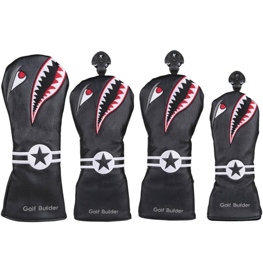 - ゴルフヘッドカバー ドライバー/ウッド FW用カバー ユーティリティ UT用カバー 4点セット変換ダグ付き サメ模様
