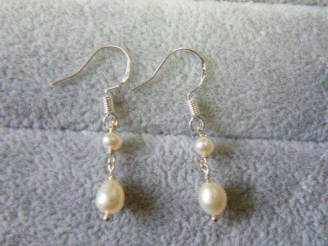 - R00096.パールシルバー925 ハンドメイド ロングピアス