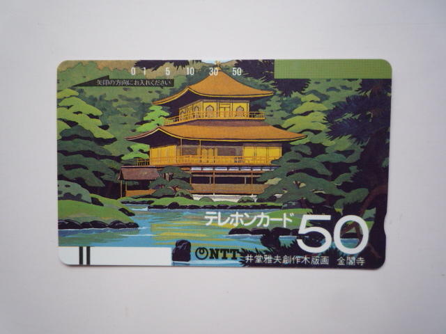 - 未使用 テレホンカード テレカ 井堂雅夫木版画 金閣寺 50度数