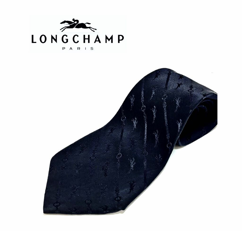 > LONGCHAPM/ロンシャン/◆ネクタイ◆ロンシャンロゴマーク素押し◆濃紺、シルク 100%、イタリー製◆程度良好!!