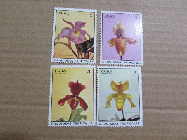 - ⑦ 植物・草花 キューバ;欄;パフィオペディルム類 4種完 1972
