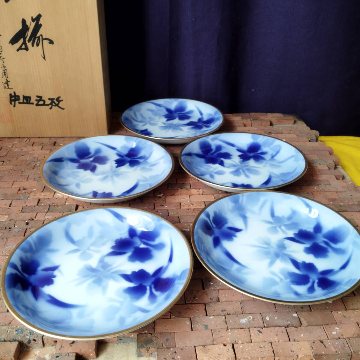 - 未使用・◎有田焼 宮内庁御用達 深川製磁 ★カトレア柄 中皿 5枚組