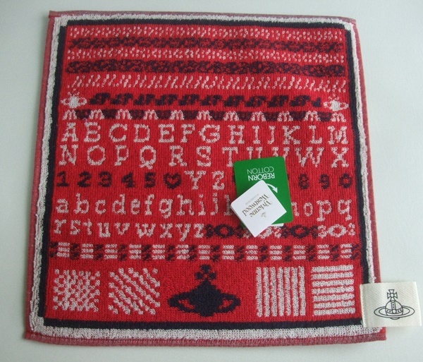 - Vivienne Westwood ヴィヴィアン・ウエストウッド アルファベット柄 タオルハンカチ 未使用品 赤系 ORB