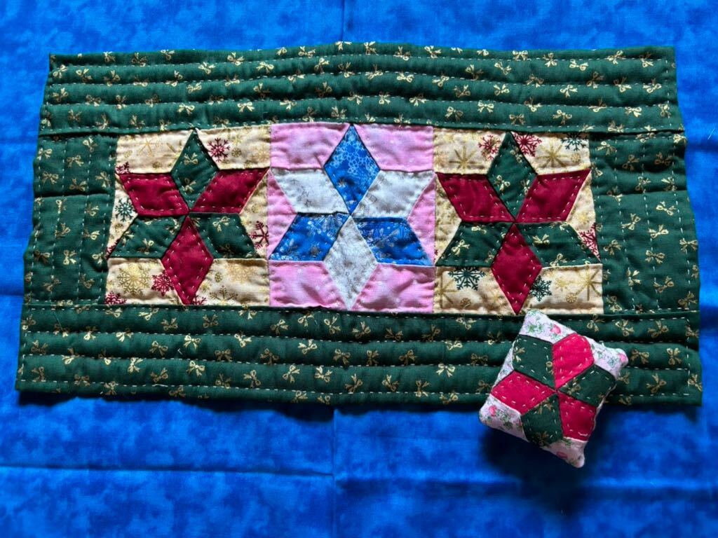 - パッチワーク ハンドメイド マットとミニピンクッションのセット